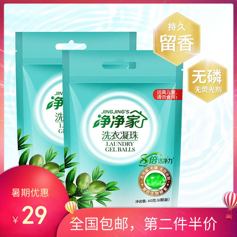 券后 券¥3已售 82 净净家洗衣凝珠试用装酵素洁净护衣亮彩护色去味提香60克9.9包邮