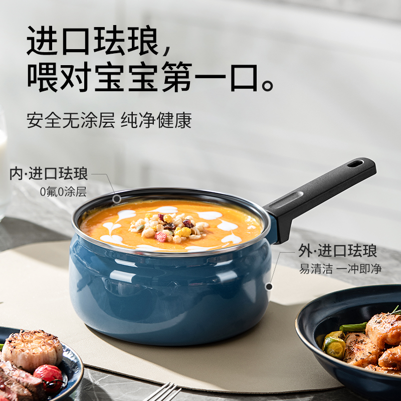 德世朗珐琅小奶锅宝宝辅食锅婴儿煎煮一体锅家用汤锅泡面锅官方锅