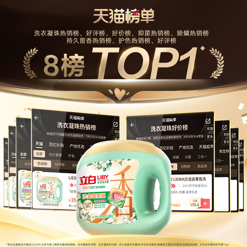 立白沙龙香氛洗衣凝珠香水留香30天除菌除螨柔顺护色护衣防串染