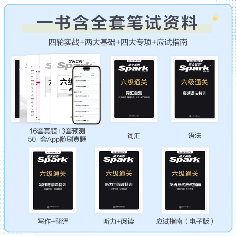 星火英语六级真题备考2025年12月大学英语四六级英语真题考试卷通关学习资料cet6级词汇单词书听力阅读理解翻译写作文模拟专项训练