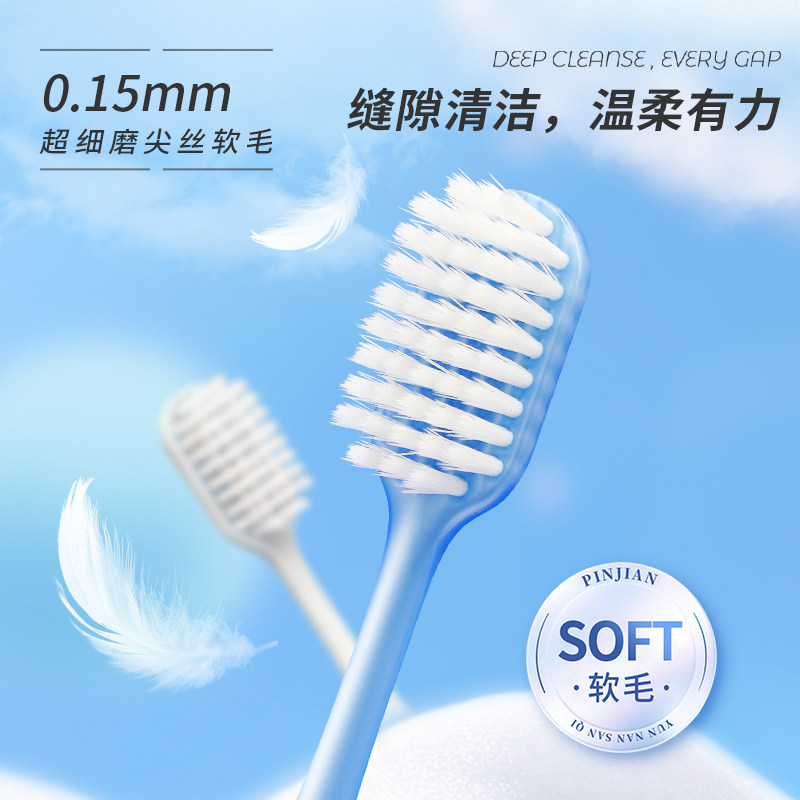 云南三七牙刷绵感柔护成人家庭通用去渍软毛去渍宽头牙刷4支-C