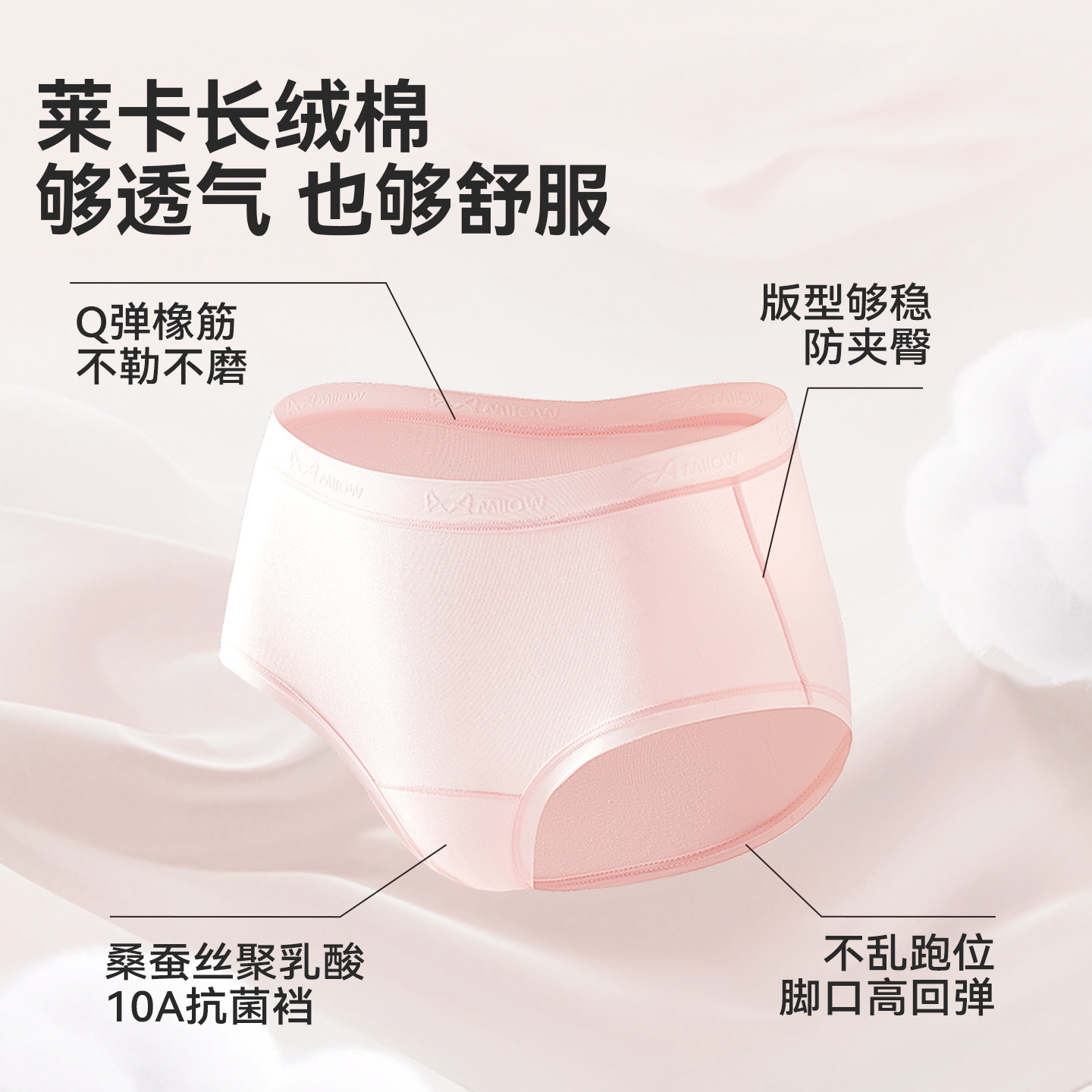 猫人新款女士三角裤新疆长绒棉A类10A抑菌加长内裆包臀高腰内裤!