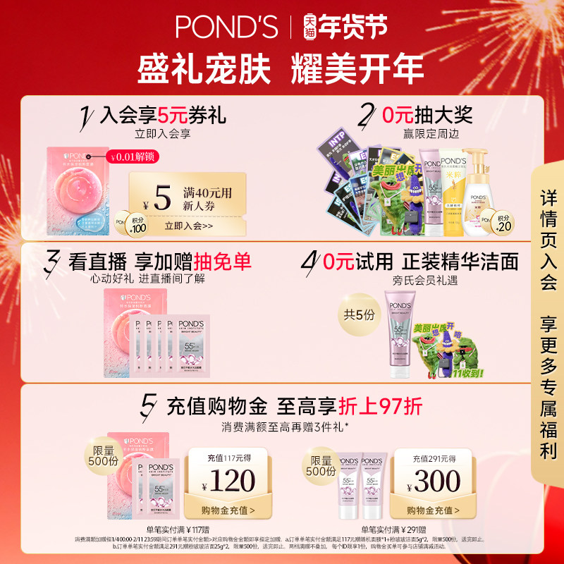 【叠加淘金币1.47元到手仅需36.63元,合单支/18.31元。会员加赠随机面膜1片】旁氏米粹洗面奶120g*2支,平价国货!口碑爆款!含双酵精粹,百分百菁纯氨基酸表活三重净颜,润泽肌肤,泡沫绵密,温和不刺激,安心洁面,洁肤焕颜,清爽一夏~