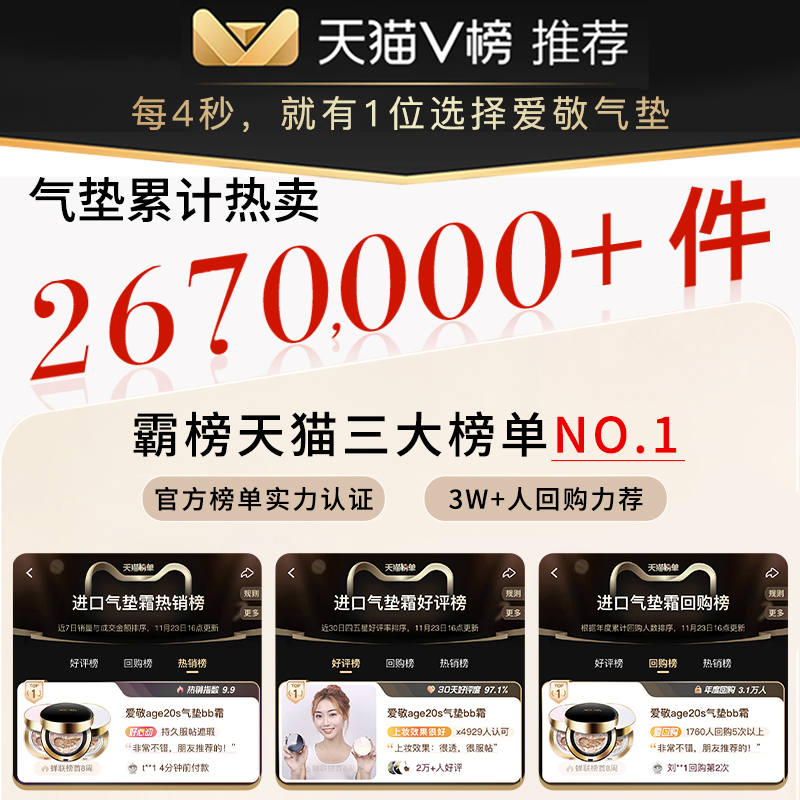 【极至85.8-90都对!叠88vip+8.8折消费券+淘金币+新客】【标配:1壳+2粉芯+2粉扑,加赠8件礼(隔离1ml*6+粉扑*2)】镇店之宝,三色拉花气垫,71%精华更水润,轻轻一拍打造水润裸妆,提亮肤色,遮瑕修颜,保湿防晒,让你持续理想妆容,超值优惠~