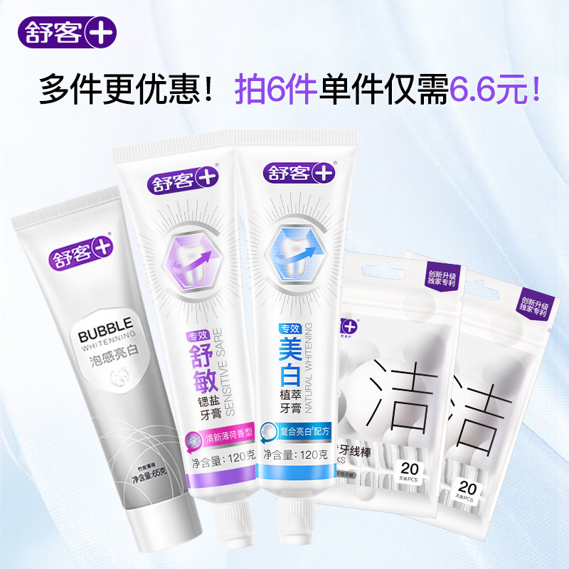 舒客牙膏口腔护理合集拍⑥件[\u1f4b0]34元[\u1f234]5.7/件牙膏/牙刷/牙线等超多款[\u1f251]选下拉详情页,点进去拍[\u1f44c]