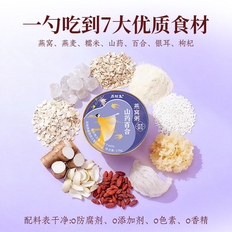 官方自营 燕窝粥即食早餐粥山药百合厚椰乳燕窝粥速食代餐营养粥