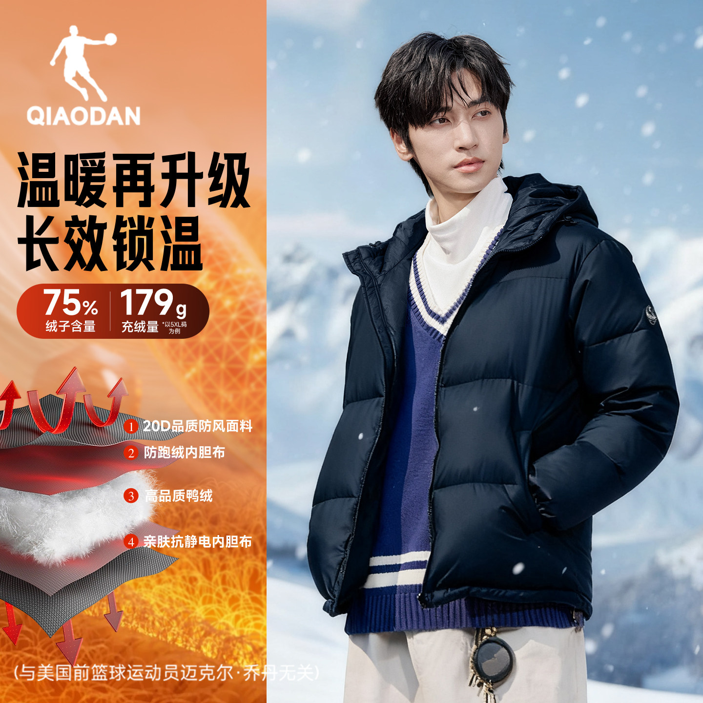 乔丹羽绒服男加厚冬季新款防风防寒短款运动外套连帽保暖男装棉服