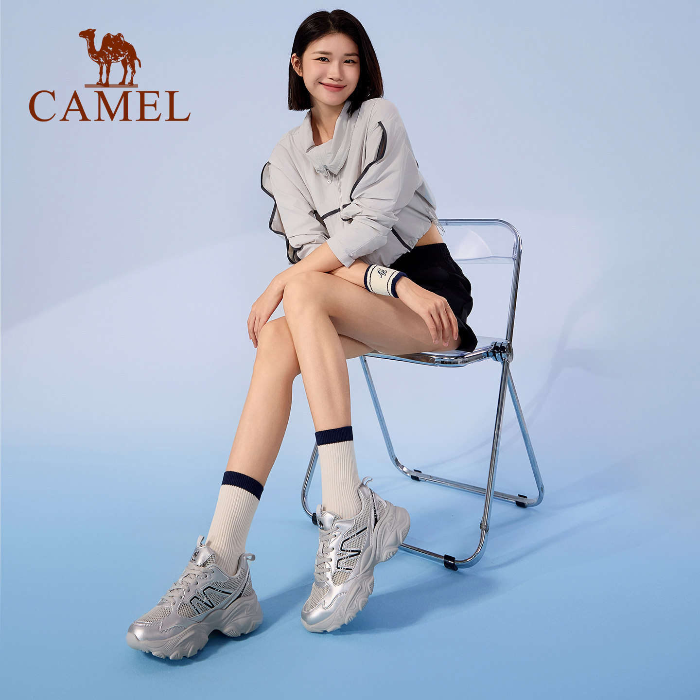 叠加淘金币4+淘礼金25.02+88vip6.95+凑单蕞低到手87,骆驼山药运动鞋女款2026春夏慢跑鞋女休闲鞋子透气厚底老爹鞋女鞋,4.5CM厚底设计4.5cm,