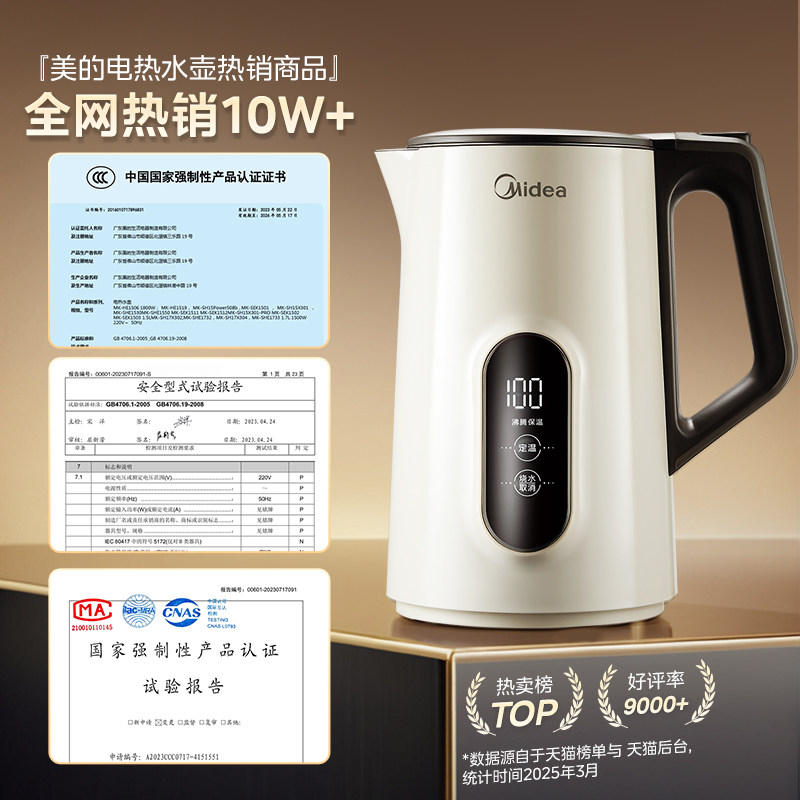 美的烧水壶电热水壶家用恒温智能热水壶一体保温水壶不锈钢开水壶