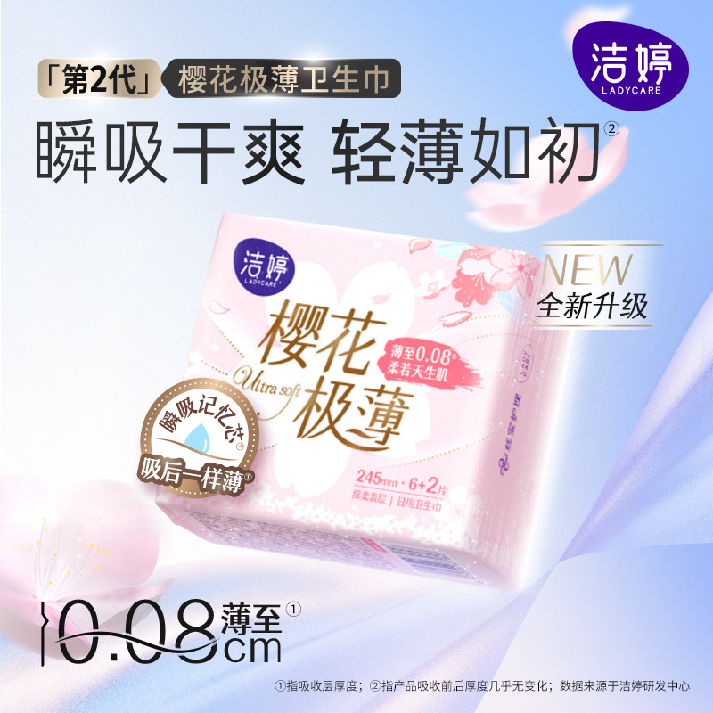 【任选6件】洁婷透气樱花0感吸双u卫生巾护垫日夜姨妈巾旗舰店B