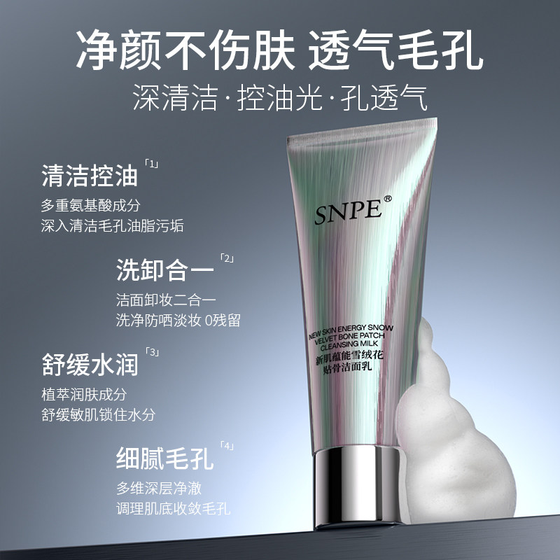 新肌蕴能雪绒花贴骨洁面乳清洁补水保湿控油学生男女洗面奶