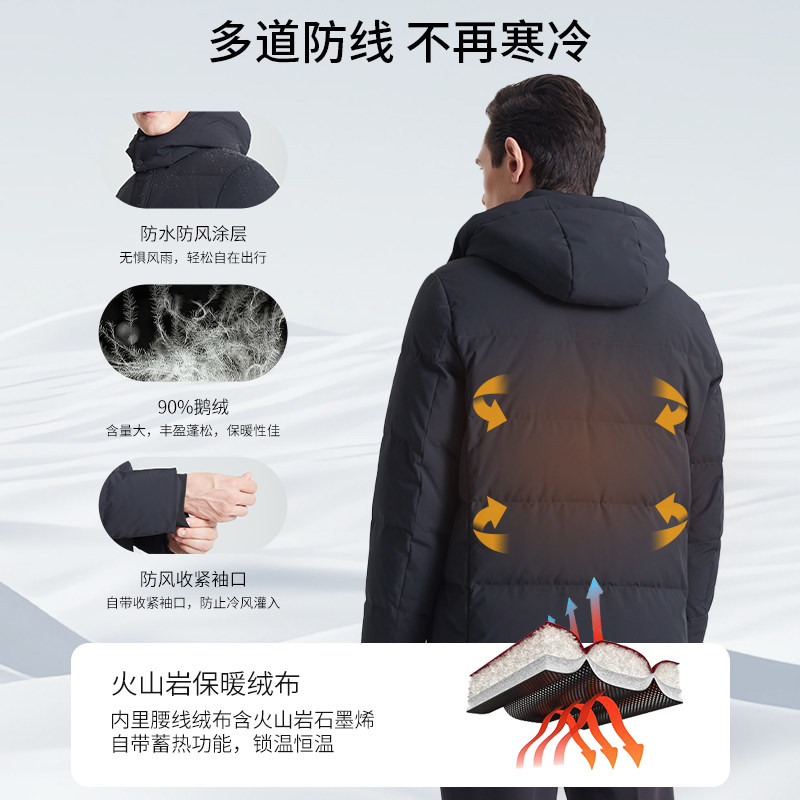 【商d!】杉杉奥莱2026春季新款中长款鹅绒羽绒服,男士保暖外套,轻盈保暖,防风抗寒,适合冬季穿着。连帽设计,时尚百搭,品质保障,温暖过冬首.选!