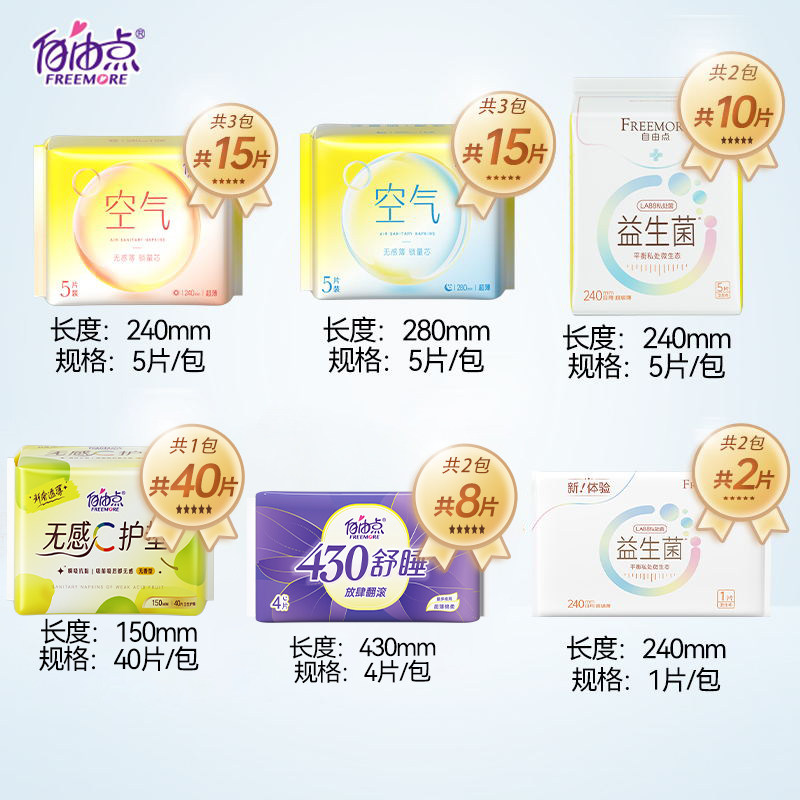 【领10元券,拉下详情页淘金币,+下单返3,到手14,折1快一包】【赵露思推荐】自由点卫生巾空气+益生菌日夜用组合姨妈巾超薄