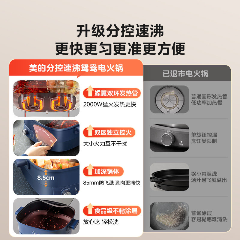 美的分控速沸电火锅鸳鸯,家用多功能一体式电炒锅电锅电煮锅不粘锅