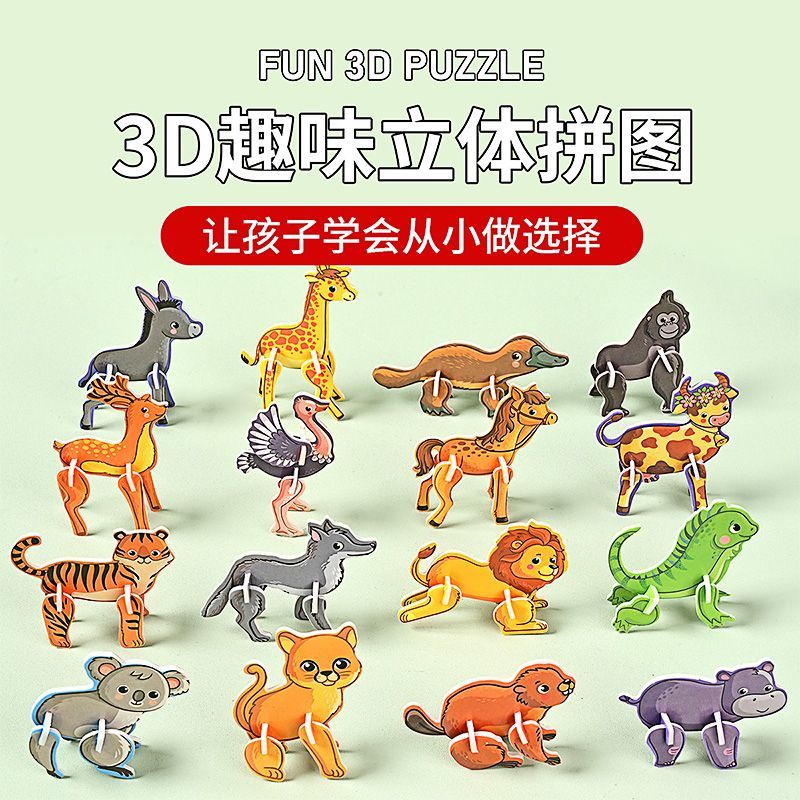 3D昆虫动物拼图25片一包只要2.9元,4.6元50版。幼儿园益智专注力训练立体拼图玩具安全无毒diy手工,锻炼逻辑思维能力锻炼大脑思维和观察力,圆润无毛刺,容易拼插,加厚纸张,方便扣取。