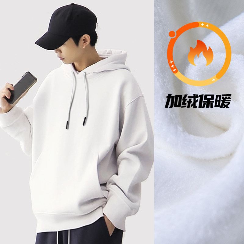 简约基础款重磅连帽卫衣男女冬季纯色潮牌美式宽松加绒保暖厚外套