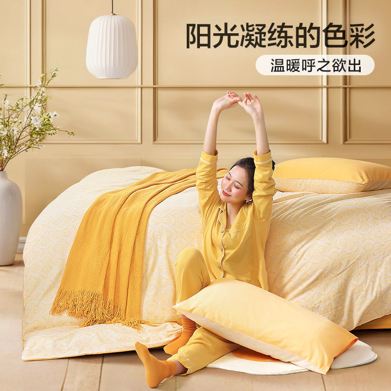 富安娜磨毛四件套全棉纯棉加厚保暖被套床单秋冬季床上用品三件套