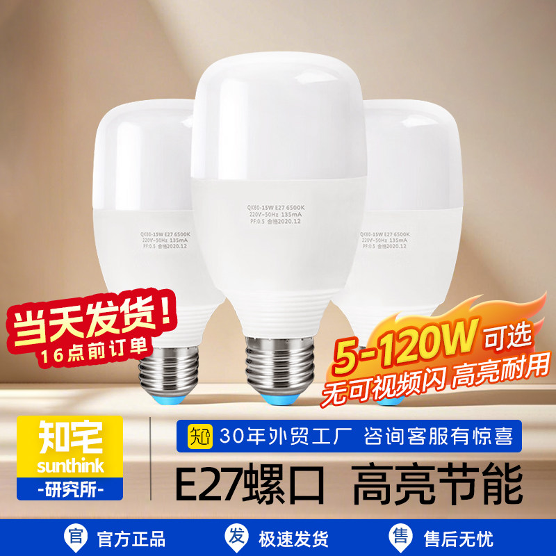 知宅Led螺口灯泡工程工厂节能家用超亮e27螺纹电灯吊灯白炽护眼灯