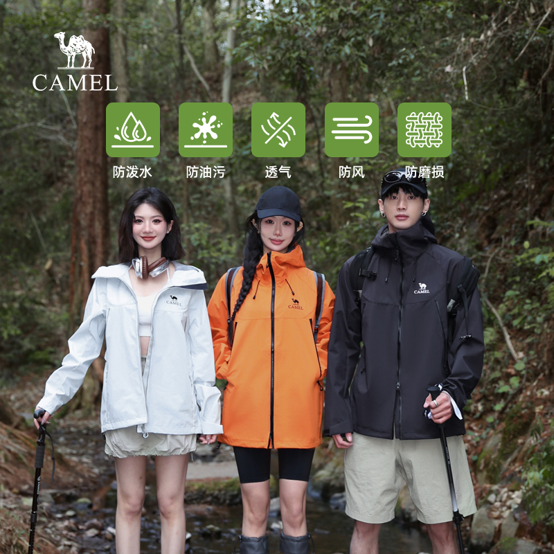 骆驼山海夹克2.0秋冬2025新款外套男橙色三防登山服连帽茄克