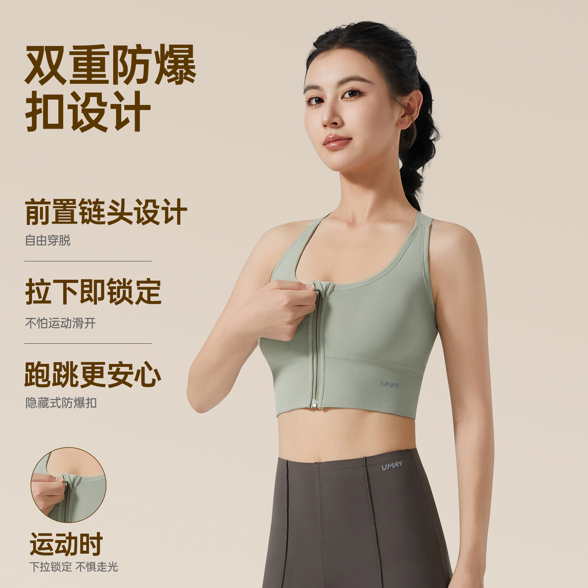 佑美高强度防震运动内衣女士带胸垫健身外穿瑜伽背心拉链运动文胸