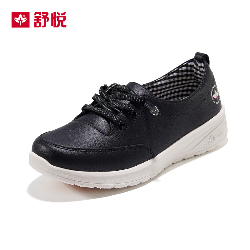 舒悦老人鞋舒适小皮鞋一脚蹬软皮软底妈妈鞋中老年防滑轻便女浅口