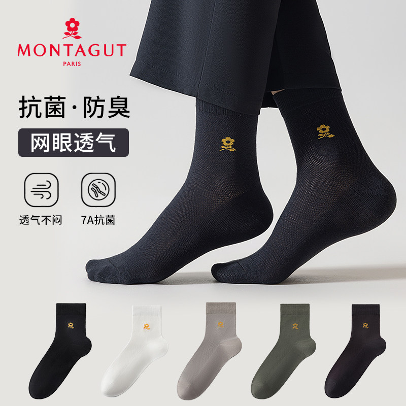 Montagut/梦特娇中筒袜男商务网眼春夏薄款抗菌防臭吸汗透气袜子