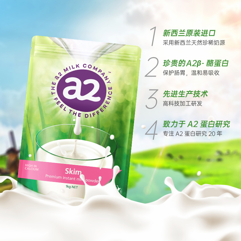 【自营】新西兰进口a2学生成人奶粉高蛋白脱脂高钙女士中老年1kg