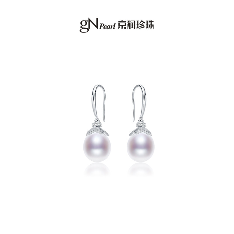 京润珍珠 丹心S925银淡水珍珠耳钩8-9mm水滴形简约送妈妈礼物P
