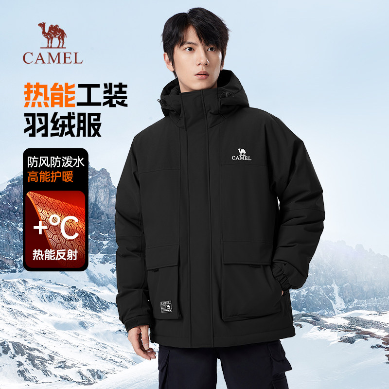 骆驼蛟龙Pro工装羽绒服男冬季2025连帽加厚保暖防寒防水外套