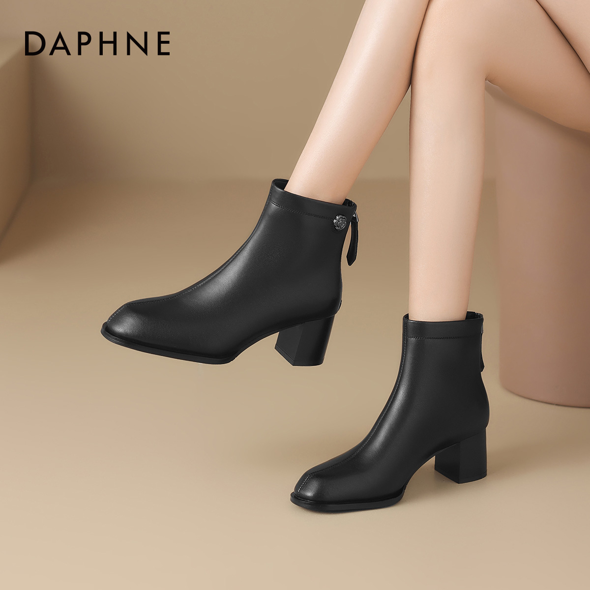 达芙妮新款小短靴2025秋冬季女靴子马丁皮靴黑色骑士女款瘦瘦粗跟