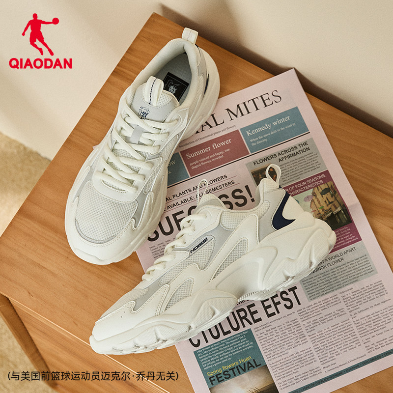 乔丹皮面防水休闲鞋男鞋2026春季轻便老爹鞋增高厚底网面运动鞋子