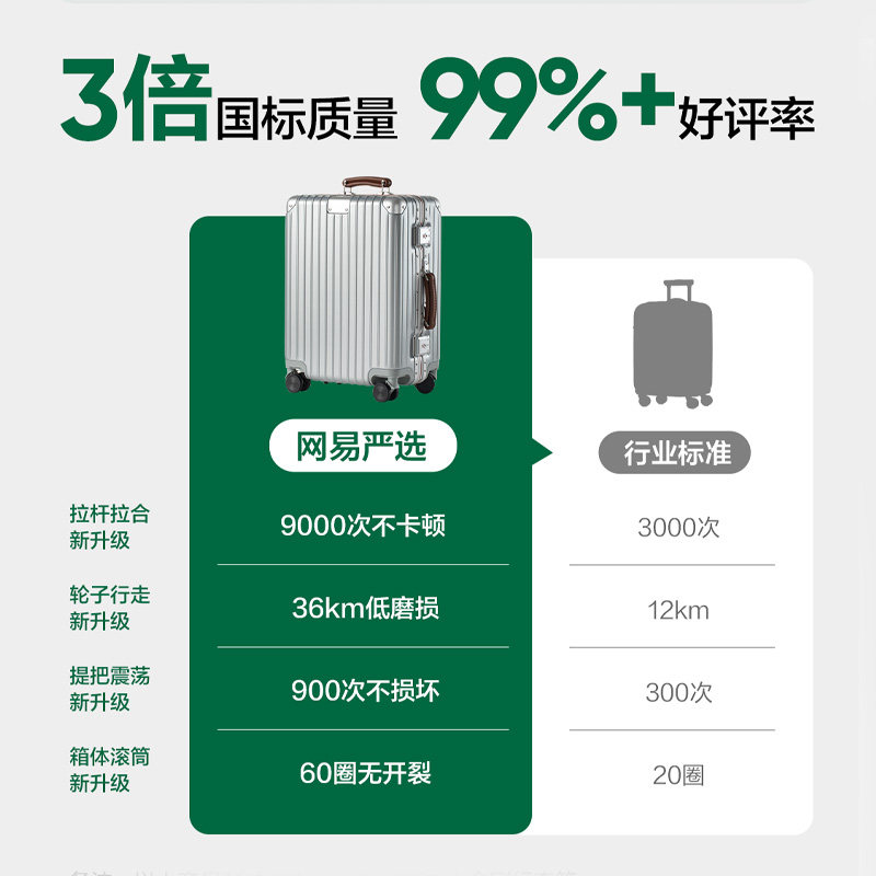 网易严选铝框拉杆箱男24寸大容量登机旅行箱密码皮箱女20寸行李箱