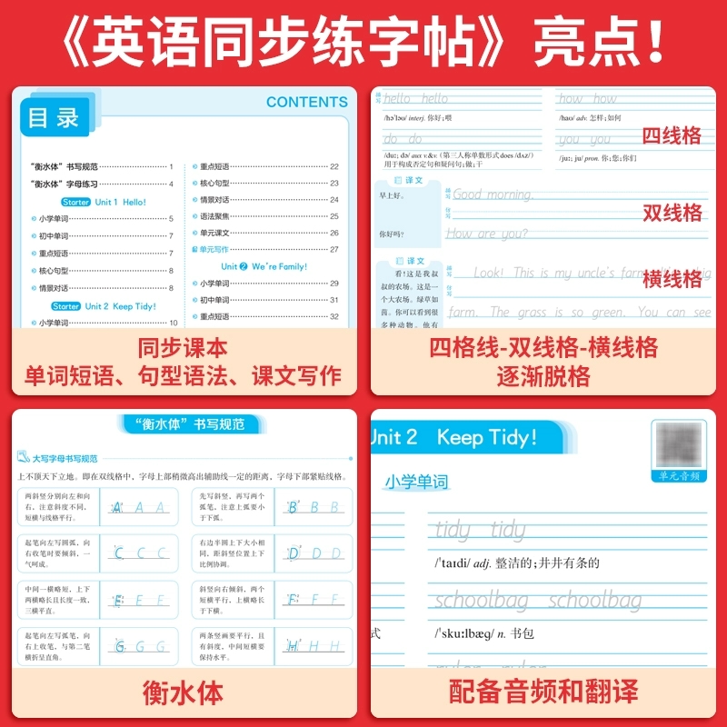 2026新版一本七年级上册同步练字帖初中生专用语文英语衡水体练字帖必背古诗文练字帖人教版中考满分作文字帖控笔!