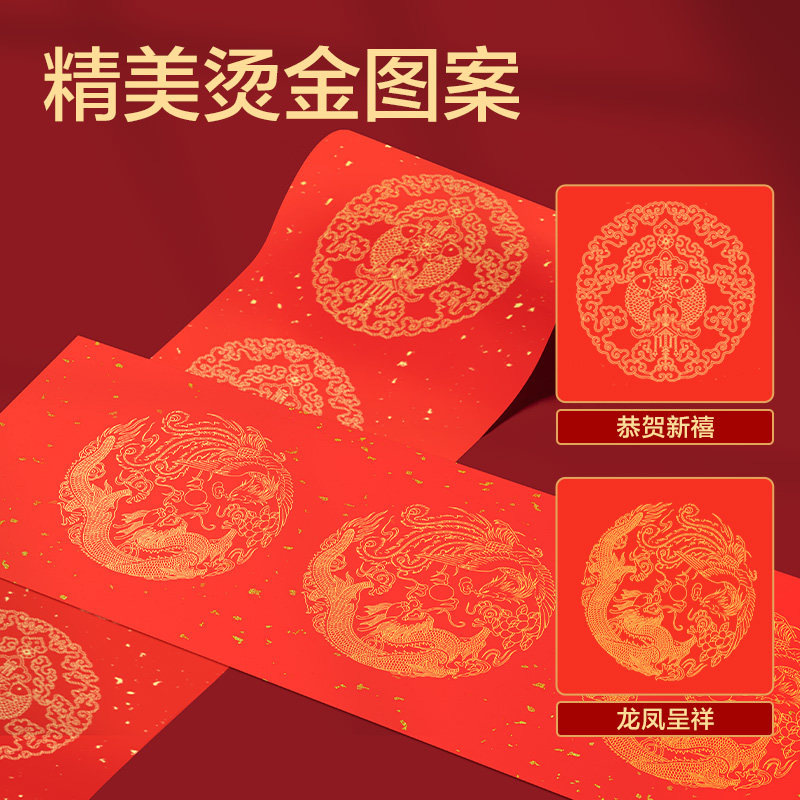 得力万年红对联纸宣纸手写春联2026年新款马年对联专用纸七言烫金工艺加厚空白洒金书法手写红纸批发