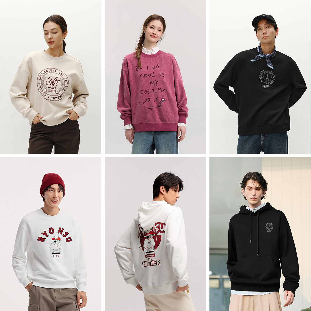 森马梅花系列卫衣男情侣装学生冬季印花连帽上衣宽松休闲潮-TK