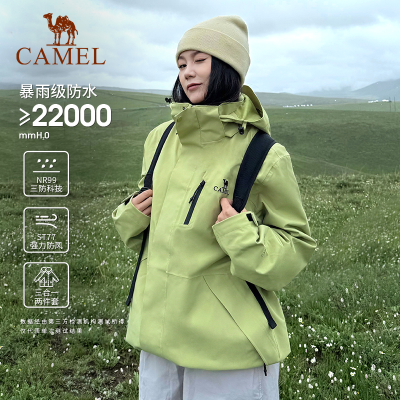【月光蓝】骆驼户外冲锋衣三合一男女防水蓝色外套冬季旅游登山服