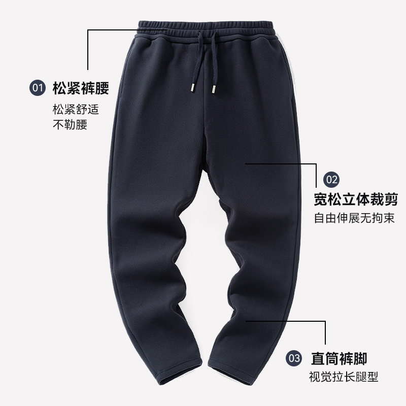鸭鸭羊毛蚕丝保暖卫裤2025秋季新款男士系带松紧宽松百搭休闲裤Y