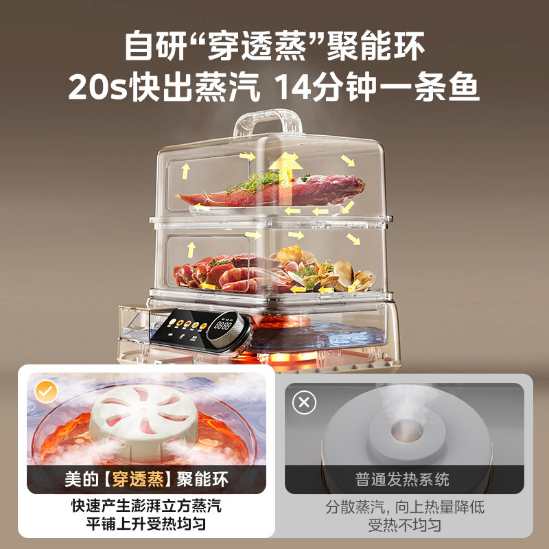 美的电蒸锅不锈钢家用蒸炖多功能一体锅可预约电蒸箱官方旗舰正品