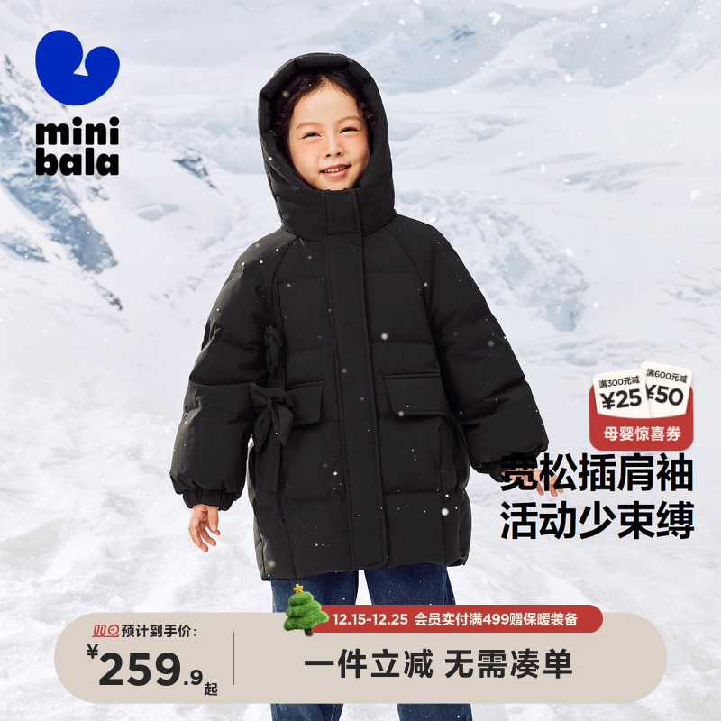 【叠消费卷+金币到手122】,迷你巴拉巴拉女童羽绒服冬季新款连帽中长款宝宝保暖洋气羽绒外套