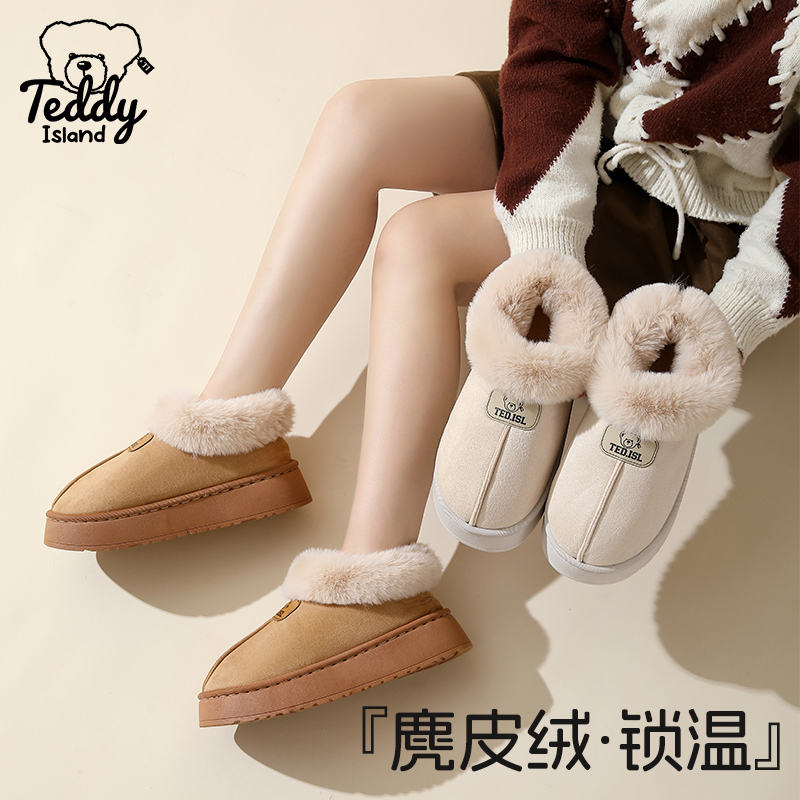 泰迪爱兰棉拖鞋女款冬季毛绒保暖加厚底高帮防滑外穿男士雪地靴子