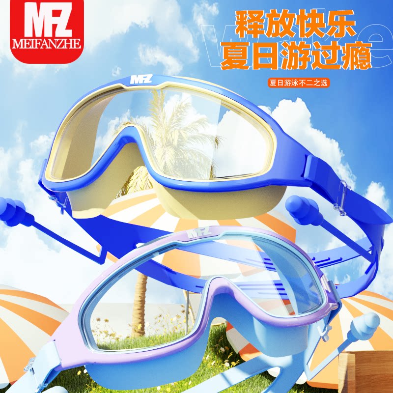 美凡哲儿童泳镜防水防雾高清大框游泳眼镜女孩男孩女男童泳帽套装