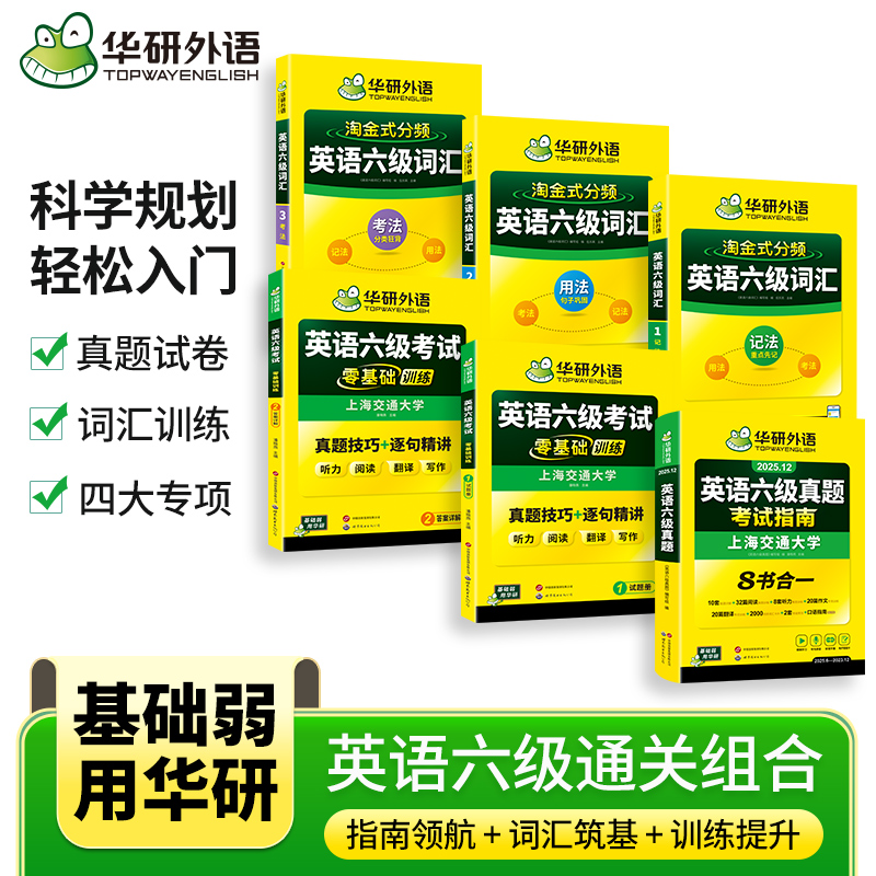 华研外语英语六级真题试卷备考2025年12月大学英语四六级历年考试真题词汇单词书阅读听力翻译写作文预测模拟专项训练资料指南cet6