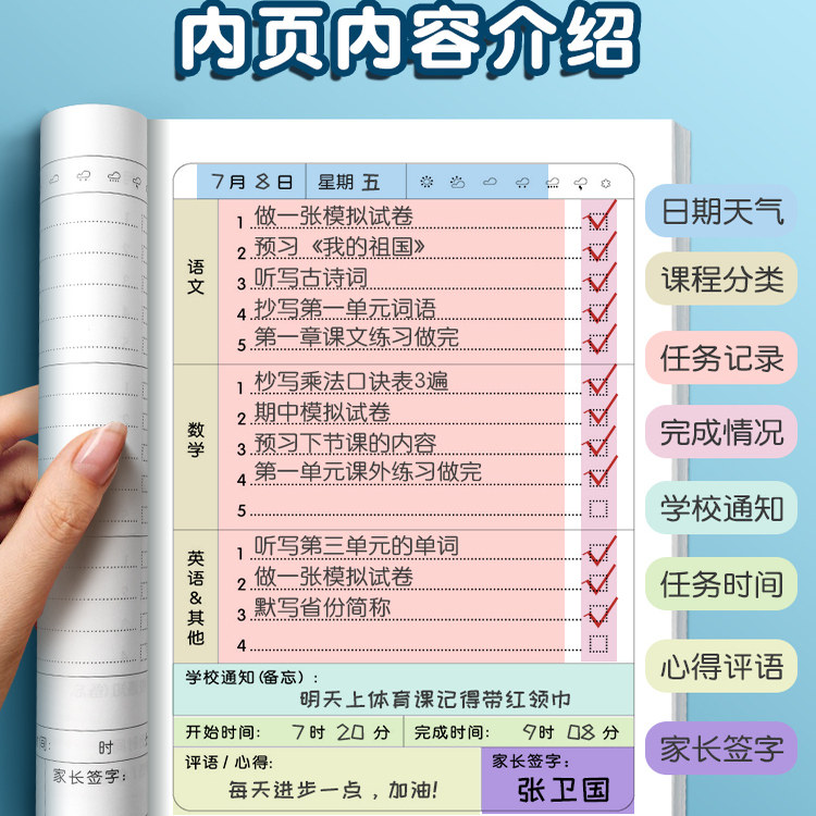 晴耕雨读家庭作业登记本,可爱设计戳中娃心,记作业、传家校消息超方便,软抄材质又便携,实用又好看,学习必备~【赠运费险】