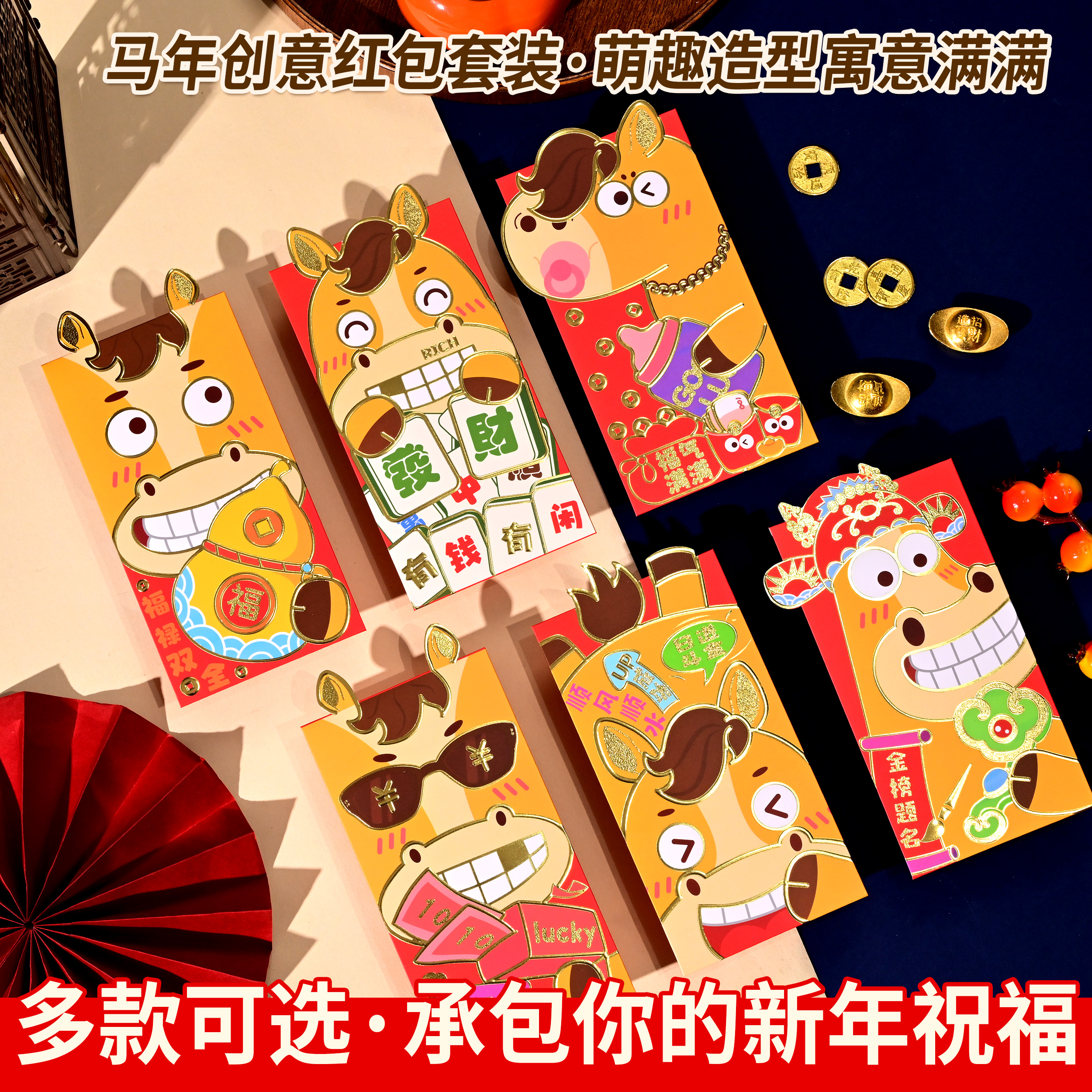 【任选五包到手30个(一包6个)】马到成功,红包送福。故宫风尚,镭射利是封。创意潮包,喜庆添年味。传统仪式感,满满好意头。婚宴首.选,国潮风格尽显