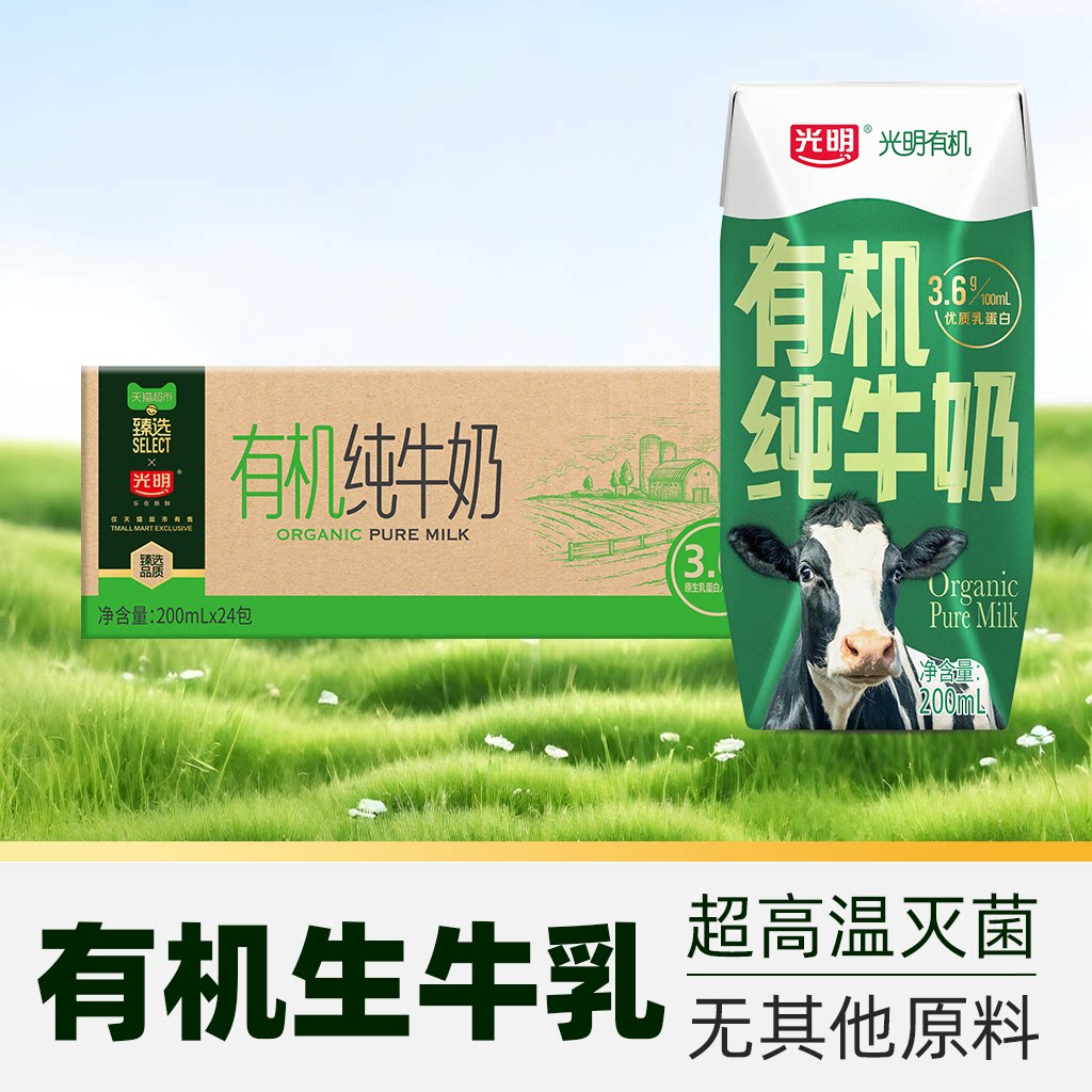 臻选光明有机纯牛奶3.6g乳蛋白200mL*24盒*2箱礼盒装,权威认证,值得信赖!