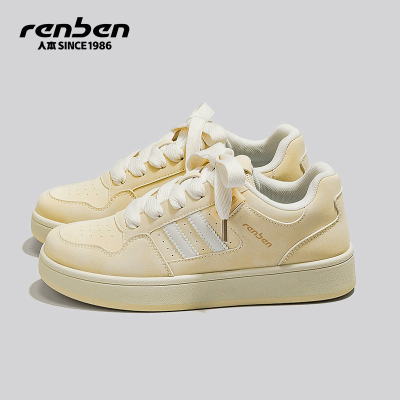 2026春秋新款人本小白鞋,厚底面包鞋设计,百搭休闲运动风,学生党必备复古板鞋,舒适透气,显脚小