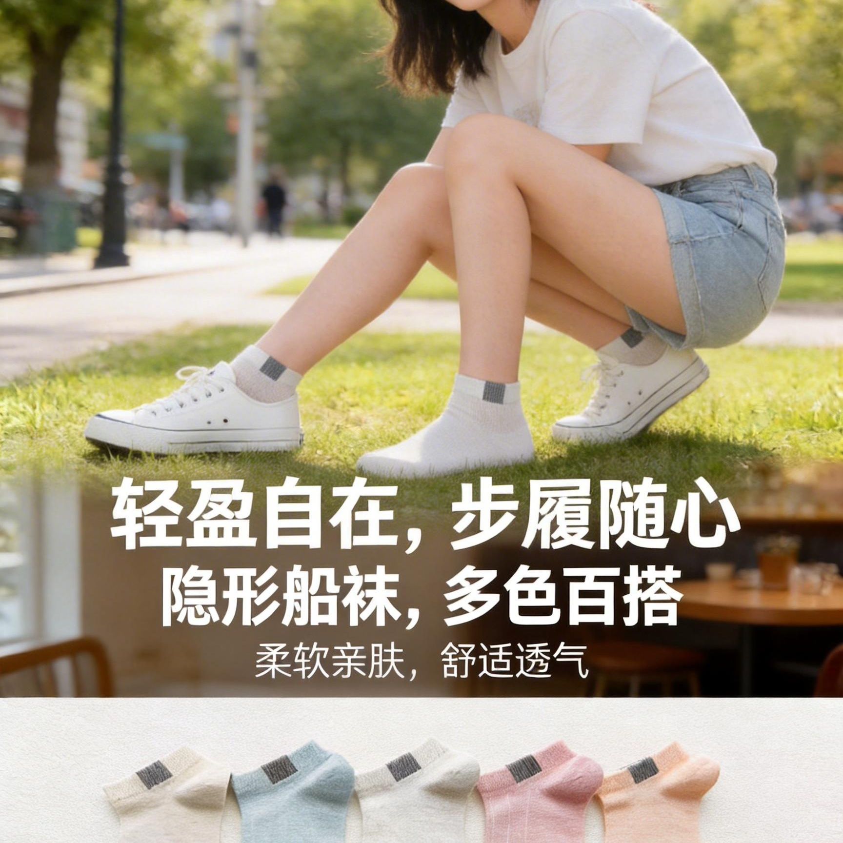 【透气吸汗】女士船袜隐形百搭舒适防臭不掉跟糖果色中筒袜子