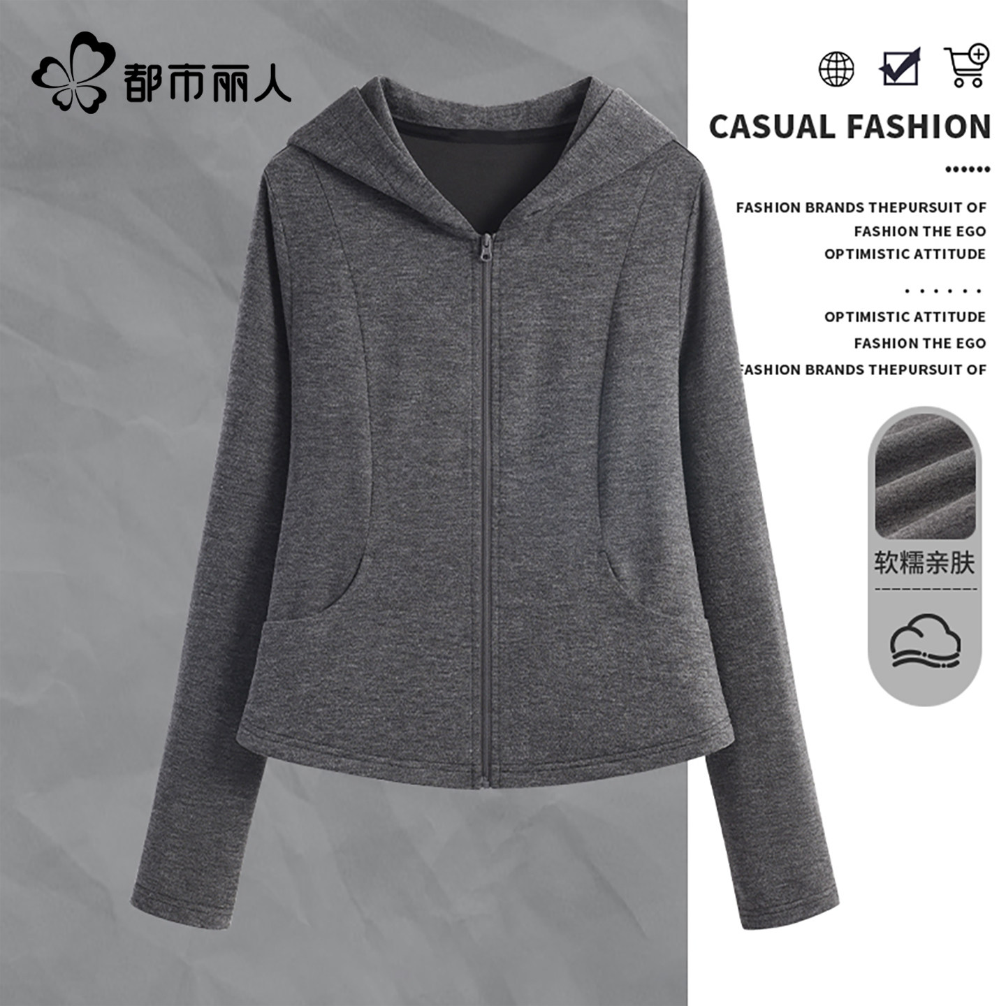 都市丽人糯米外套女款2025年新款爆款时尚洋气灰色加绒卫衣开衫A