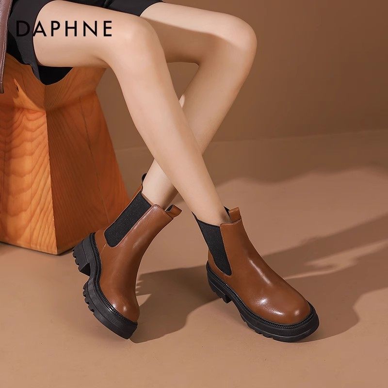 达芙妮加绒长筒靴子女冬清仓短靴保暖棉鞋复古马丁靴厚底雪地靴女