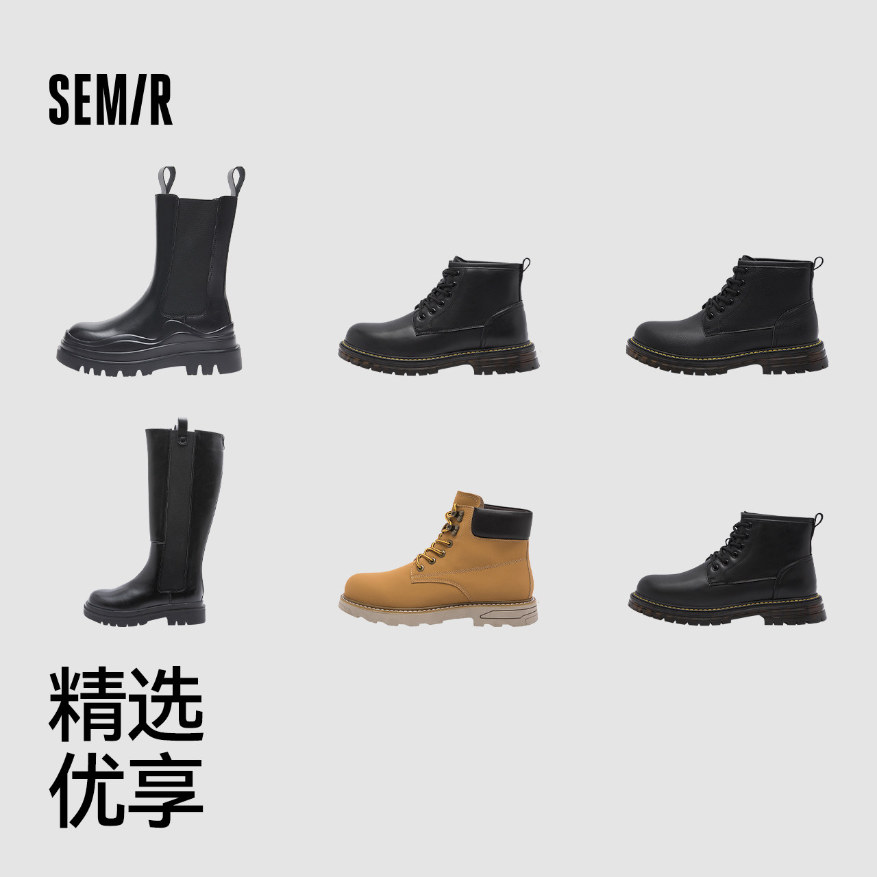 【鞋品合集】Semir马丁靴女鞋秋季厚底雪地靴长筒靴大黄靴男-TK